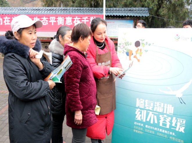 2月14日上午,县林业局在巴山镇新岭村便民服务中心开展以湿地修复、野生动植物保护为主题的宣传活动。活动现场,县林业局10余名志愿者结合活动展板,向现场的群众仔细讲解湿地的功能、类型以及为什么要修复湿地等专业常识30余个,发放知识手册100余册。同时普及常见的国家重点保护野生动植物种类、保护等级以及野生动物救助等20余种。