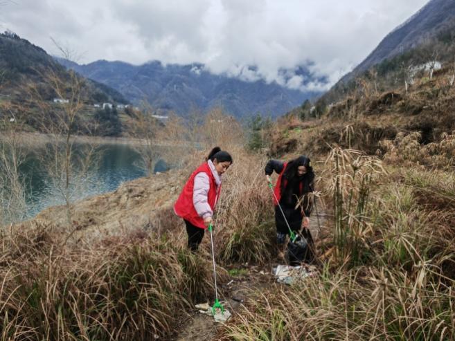 活动结束后,志愿者来到巴山湖国家湿地公园环湖步道,纷纷伸出双手,捡拾步道周边的污染物,还巴山湖以干净、清洁,给野生动植物以安全的栖息环境,迈出2023年城口县湿地修复、野生动植物保护的第一步。