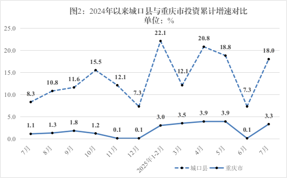 投资高位增长。1—7月全县固定资产投资同比增长18.0%。其中基础设施建设投资增长51.9%。从三次产业看,第一、二、三产业分别同比增长22.7%、61.2%和5.5%。