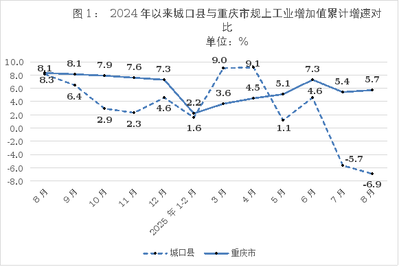 工业生产增速回落。1—8月,全县规上工业增加值同比下降6.9%,低于全市12.6个百分点,低于全国13.1个百分点。