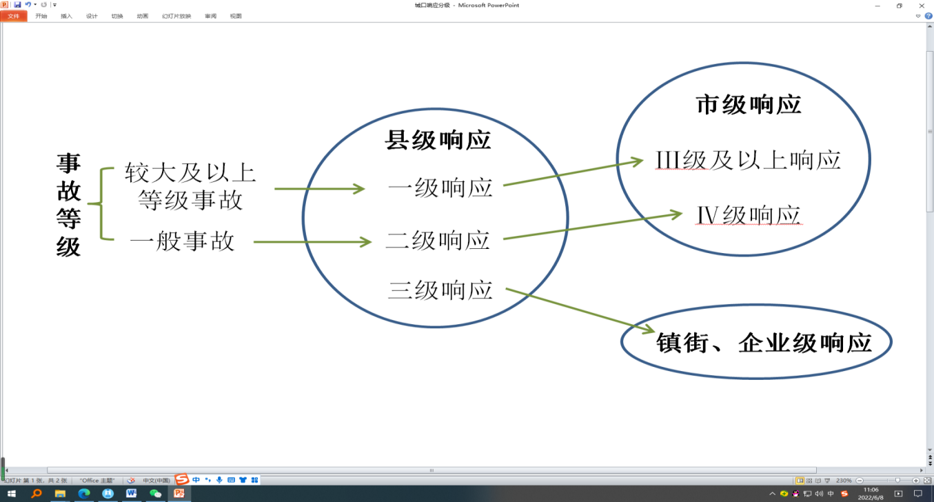 根据《重庆市危险化学品事故应急预案(暂行版)》第四节应急响应中的职责划分,本预案综合考虑事故的危害程度、影响范围、事发单位和各乡镇人民政府(街道办事处)控制事态的能力和需调派的应急资源情况,将本县危险化学品事故应急响应分为三个级别,其中最高级一级与市预案Ⅳ级响应衔接,县级应急力量负责先期处置;二级响应由县级应急力量统一指挥应急处置工作;三级响应由事发单位、各乡镇人民政府(街道办事处)主要负责抢险救援工作,县级应急力量可派出工作组进行指导。