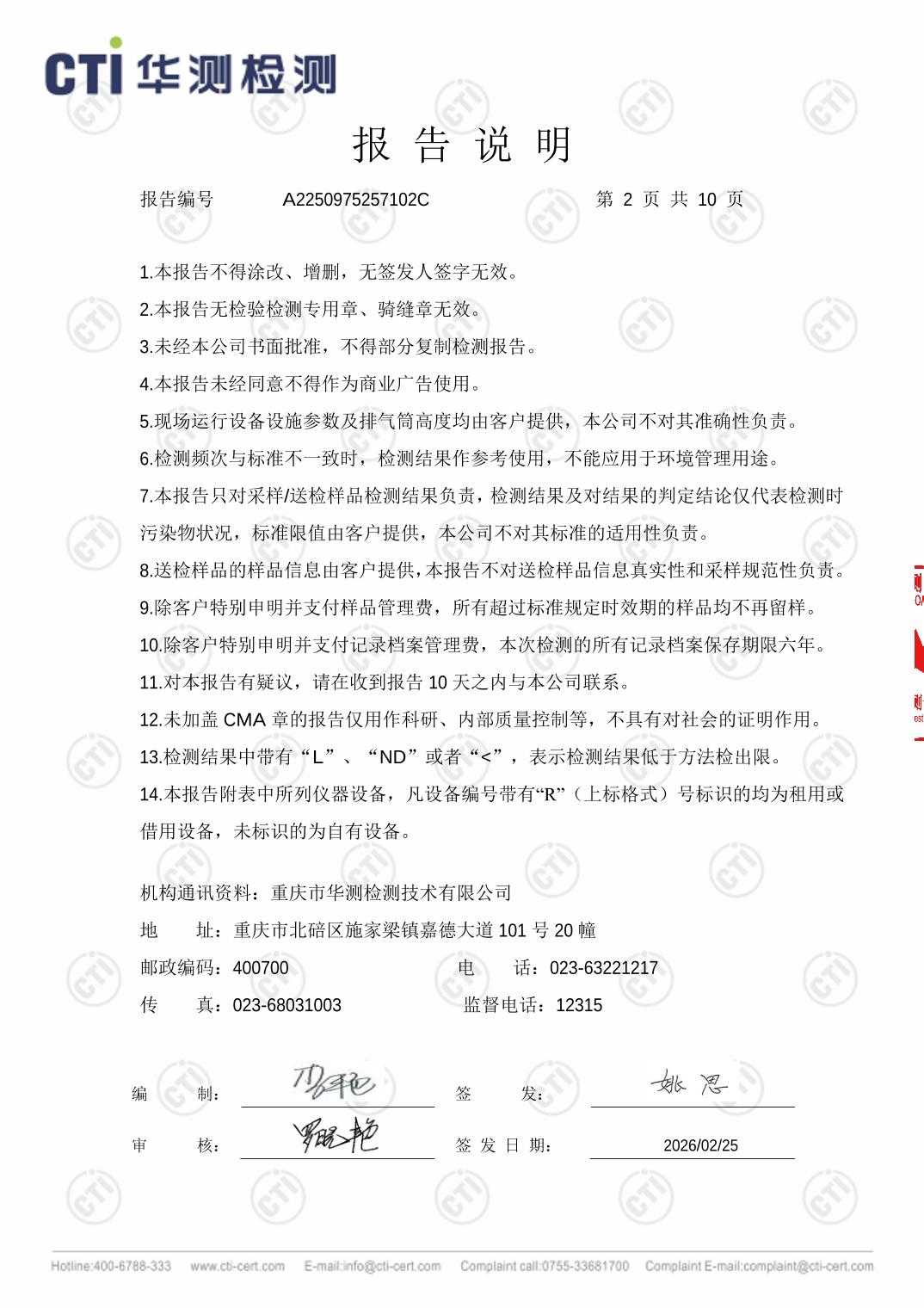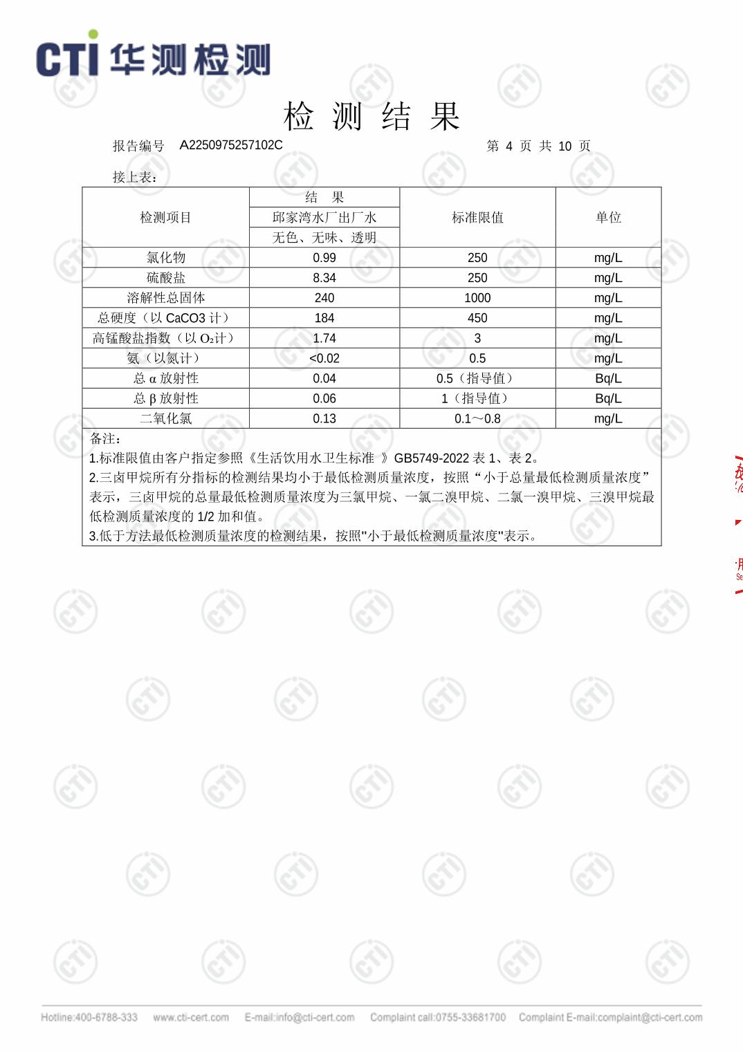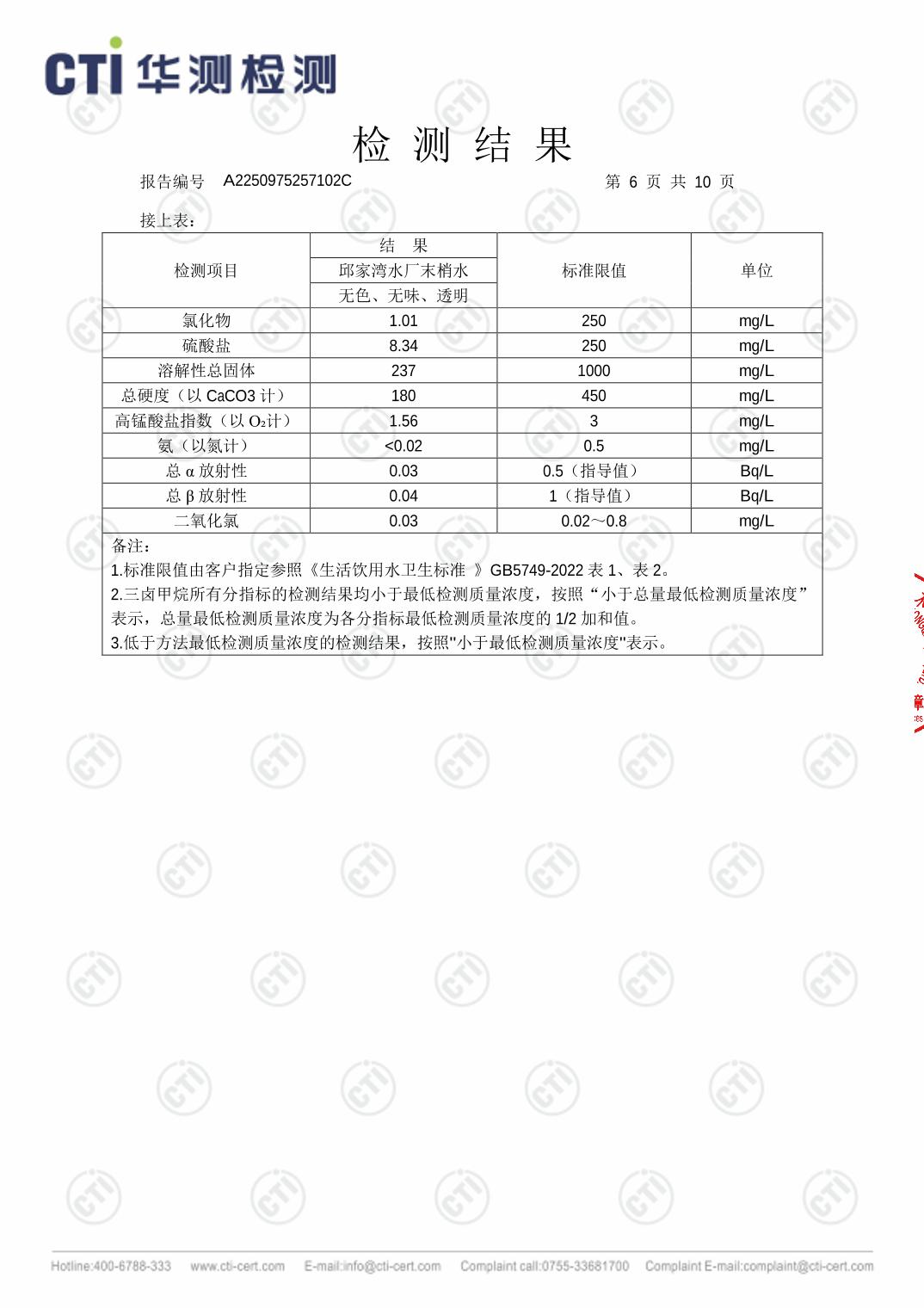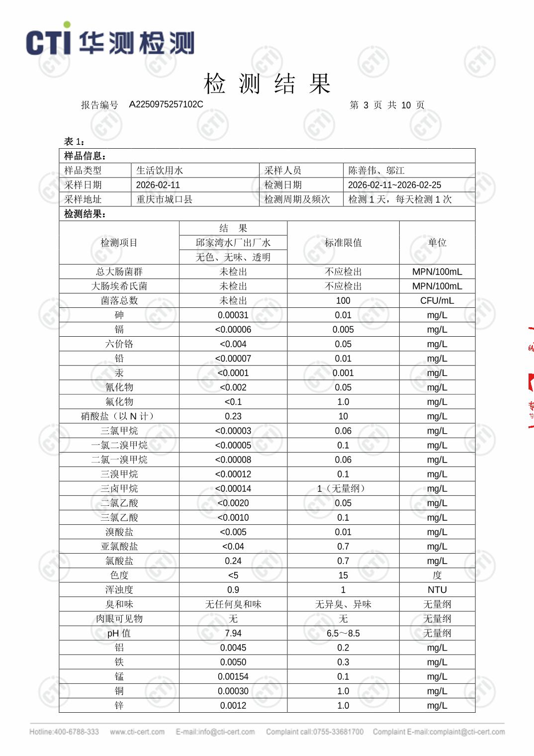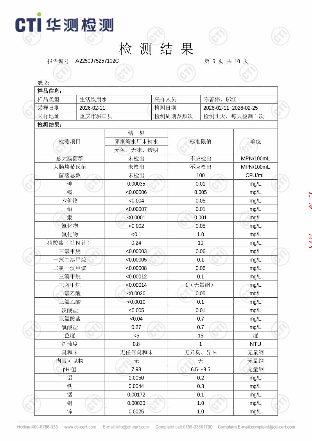 城口县邱家湾水厂2026年2月水质检测报告