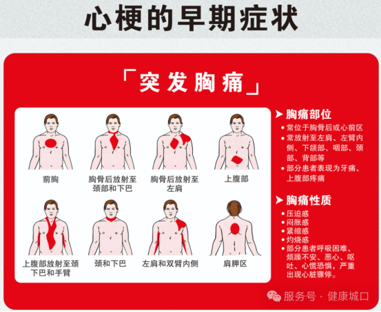 一是出现如图急性胸痛症状,要迅即拨打120;