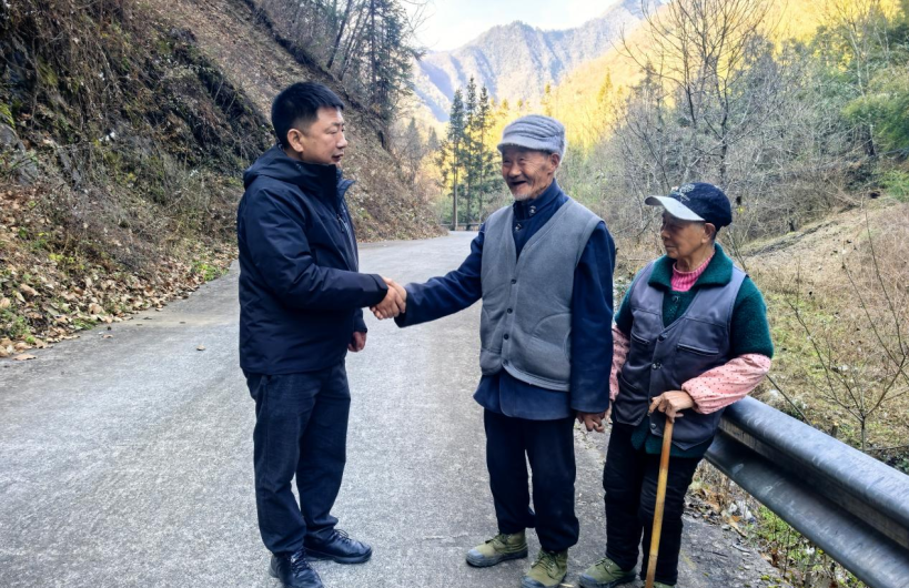 12月11日,坪坝镇党委书记代信清(左)带队走访辖区群众,入户交流听诉求、解难题,宣传政策、收集民意,切实回应和解决群众急难愁盼。