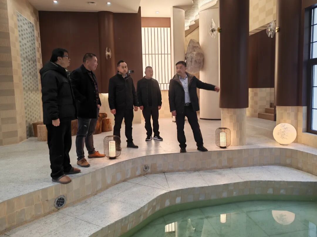 12月8日,河鱼乡党委书记代忠相(右一)带队实地指导相关民宿“药旅融合”项目建设工作,统筹策划开业运营方案,聚力推出河鱼民宿药膳、药养、药浴特色IP。
