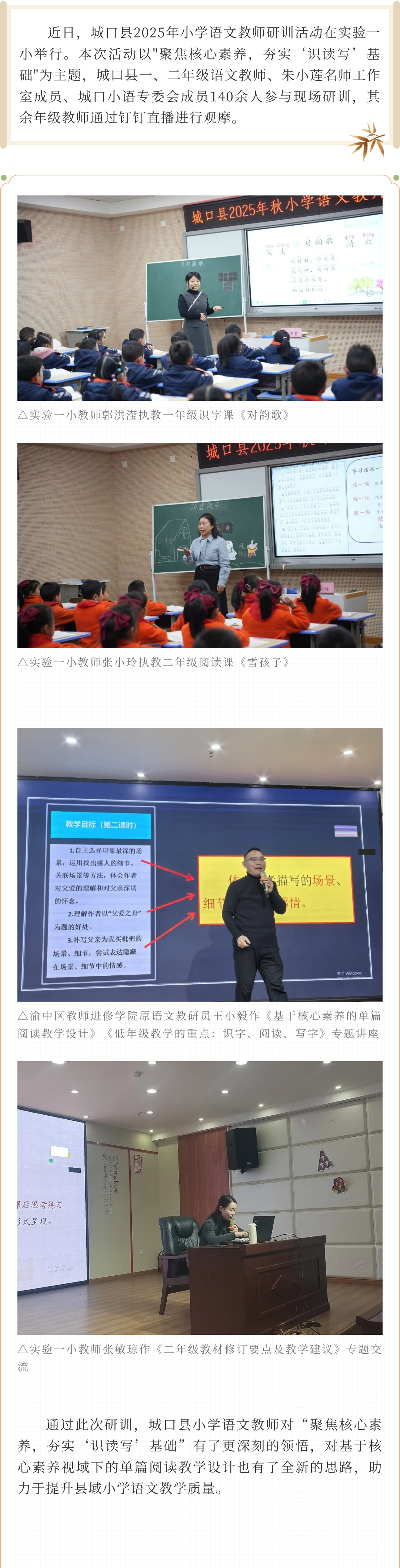 聚焦核心素养,夯实“识读写”基础 ——城口县2025年小学语文教师研训活动