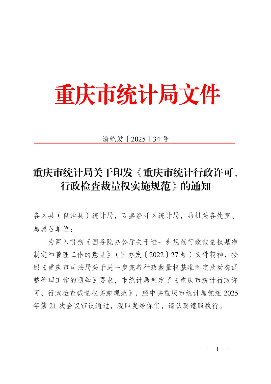 - [ 发文字号 ] 渝统发〔2025〕34号