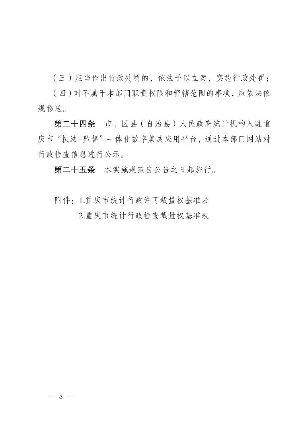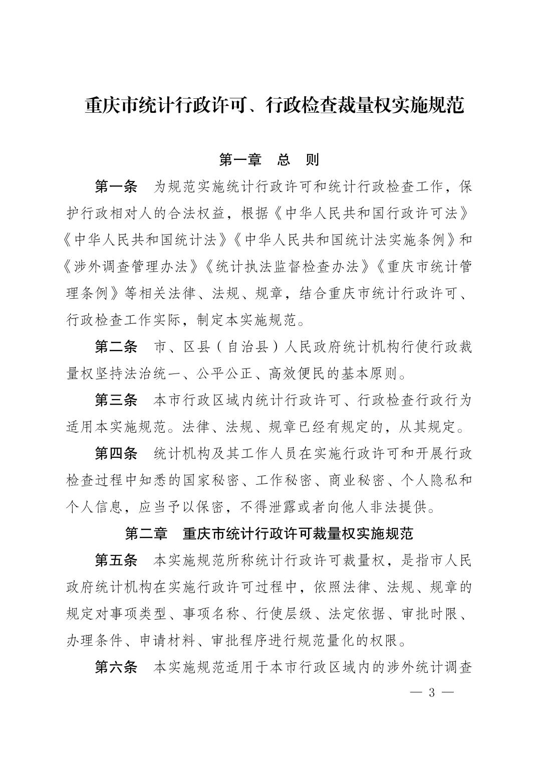 关于印发《重庆市统计行政许可、行政检查裁量权实施规范》的通知