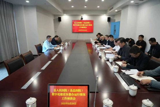 2025年9月26日上午,县委常委、组织部部长陈杰莅临县人民医院本部院区,召开县总医院数字化建设进展及整合运行情况工作座谈会。县总医院党政班子成员及相关职能部室负责人参加座谈会。