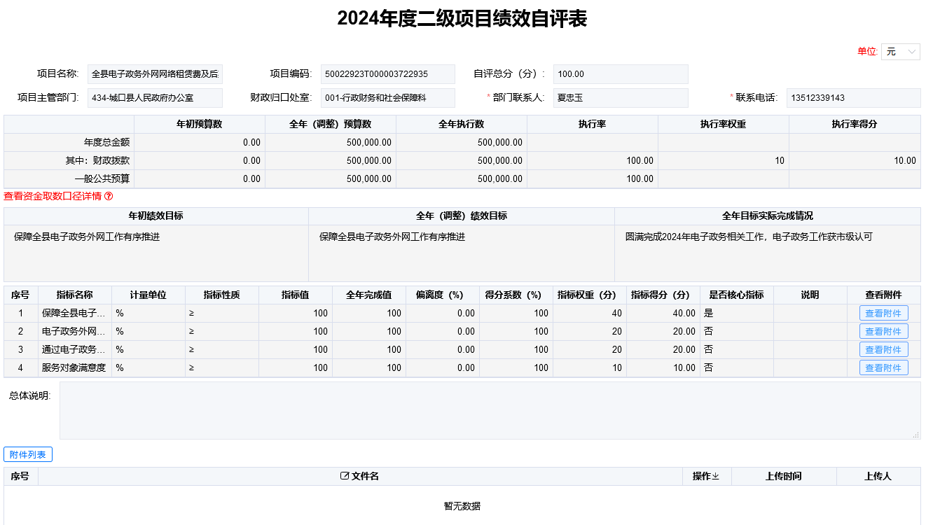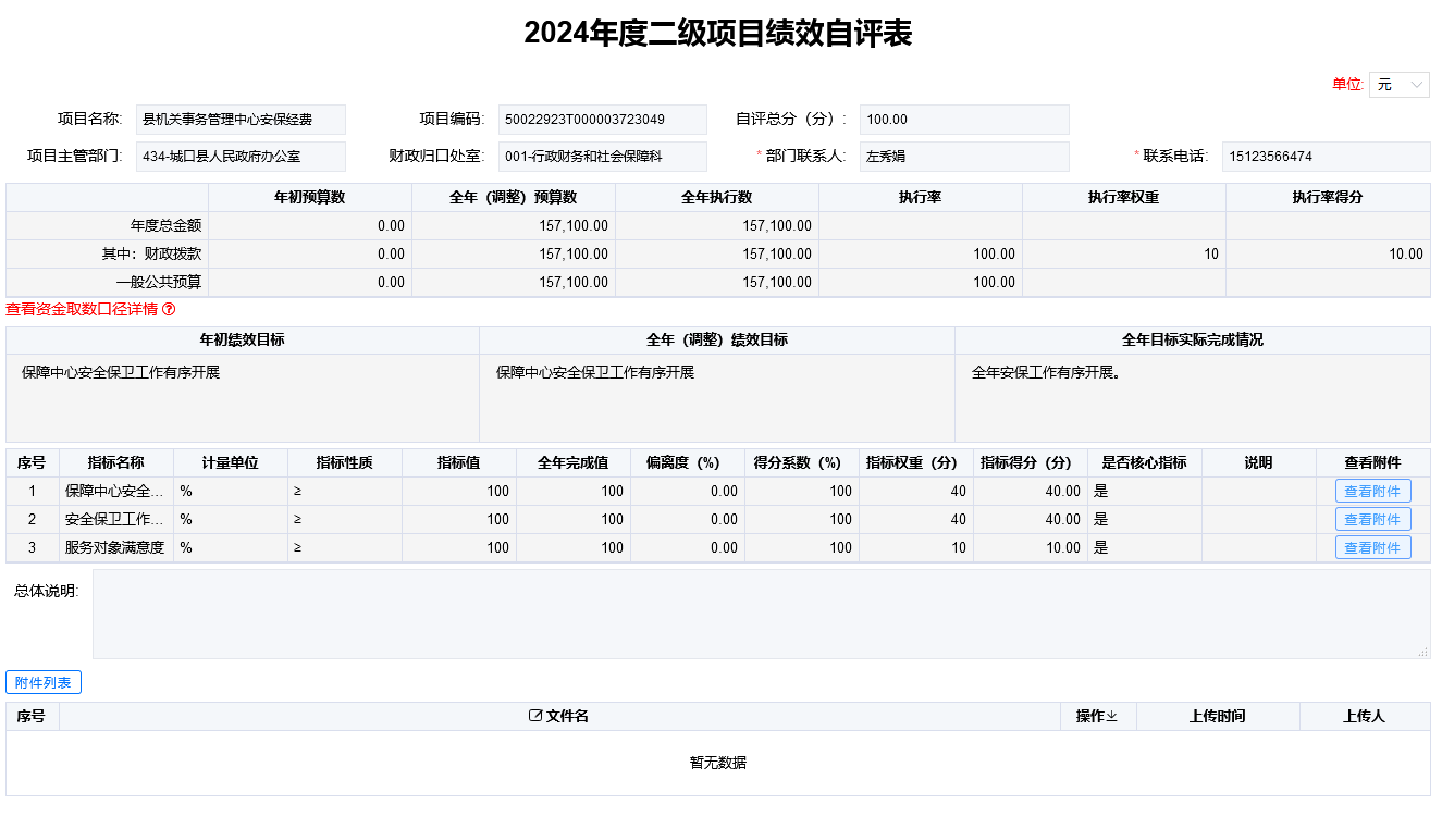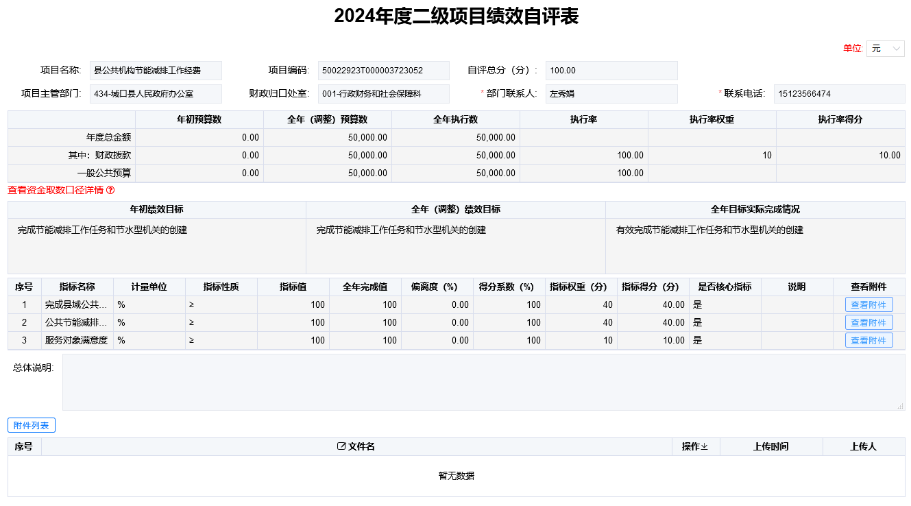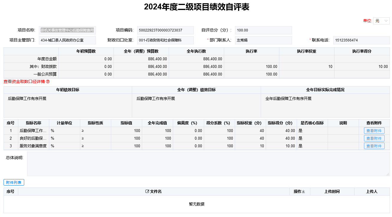 项目支出绩效自评表(二级项目)