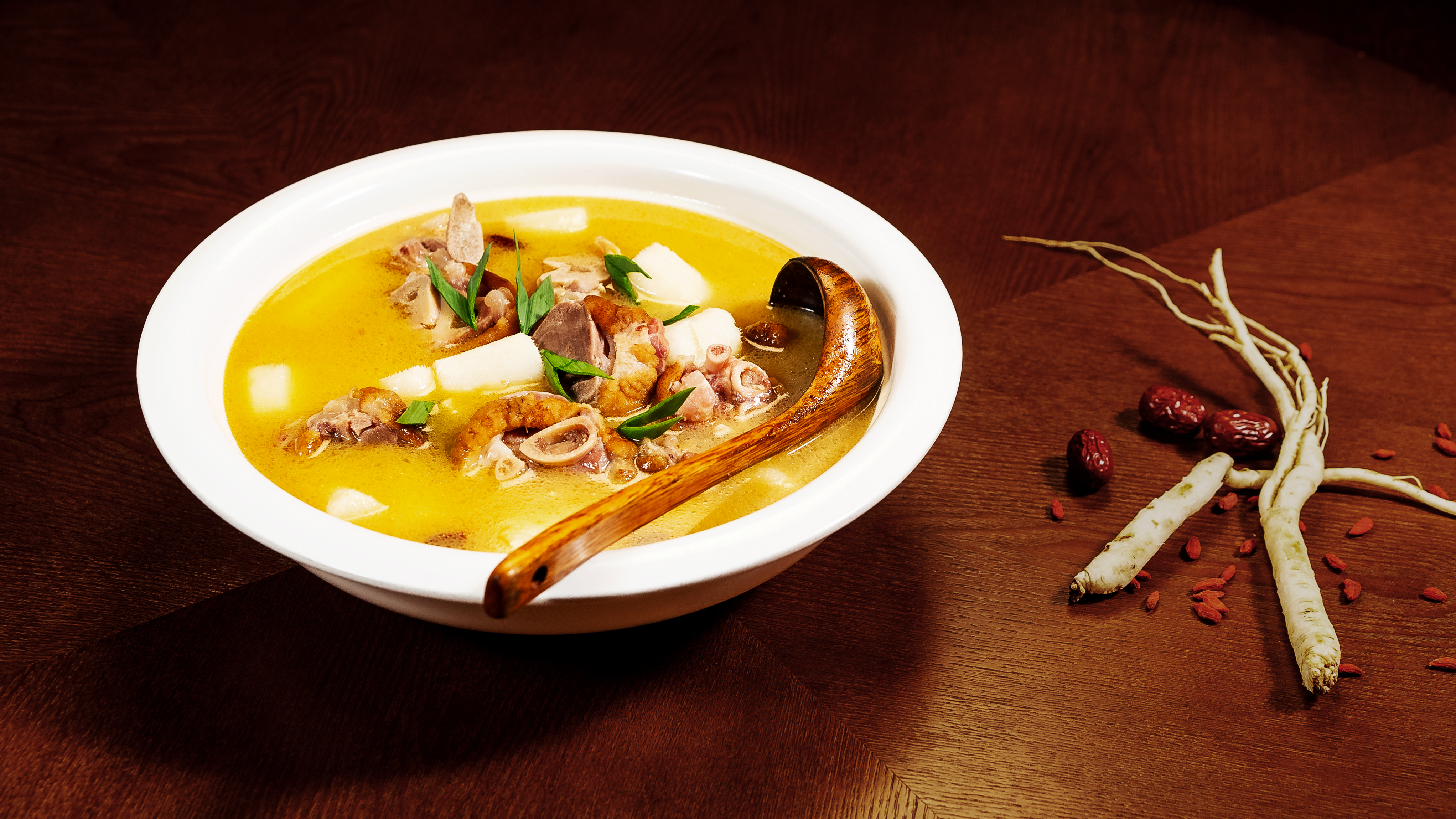 相传汉光武帝刘秀来到城口品尝炖猪蹄后,便御题“天下第一蹄”。传说虽难考,城口人对美味的坚守却让腊香飘了千年。山药腊蹄汤锅尤见真章:选城口腊后蹄,经温水泡、火燎皮、刮洗剁块,与山药、干洋芋果等共炖。旺火烧炒,石锅慢煨,皮糯肉香裹挟干笋、四季豆的清香。醇厚汤汁里,是匠心坚守,更是城口人暖身暖心的烟火记忆。