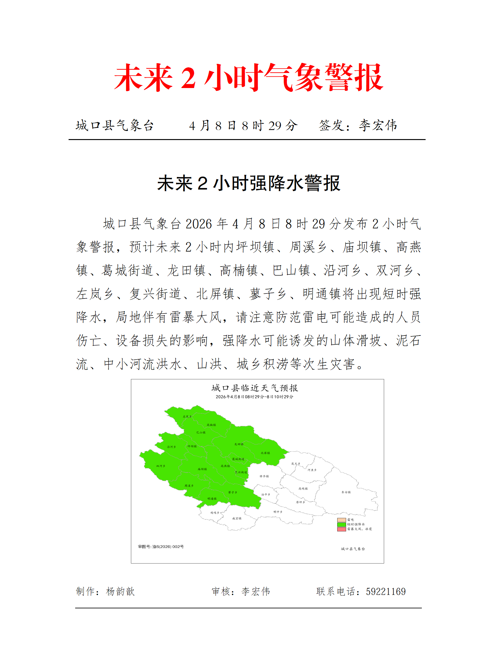 未来2小时强降水警报