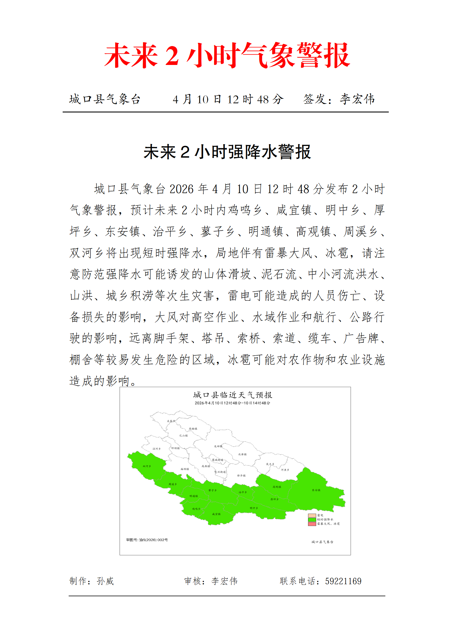 未来2小时强降水警报