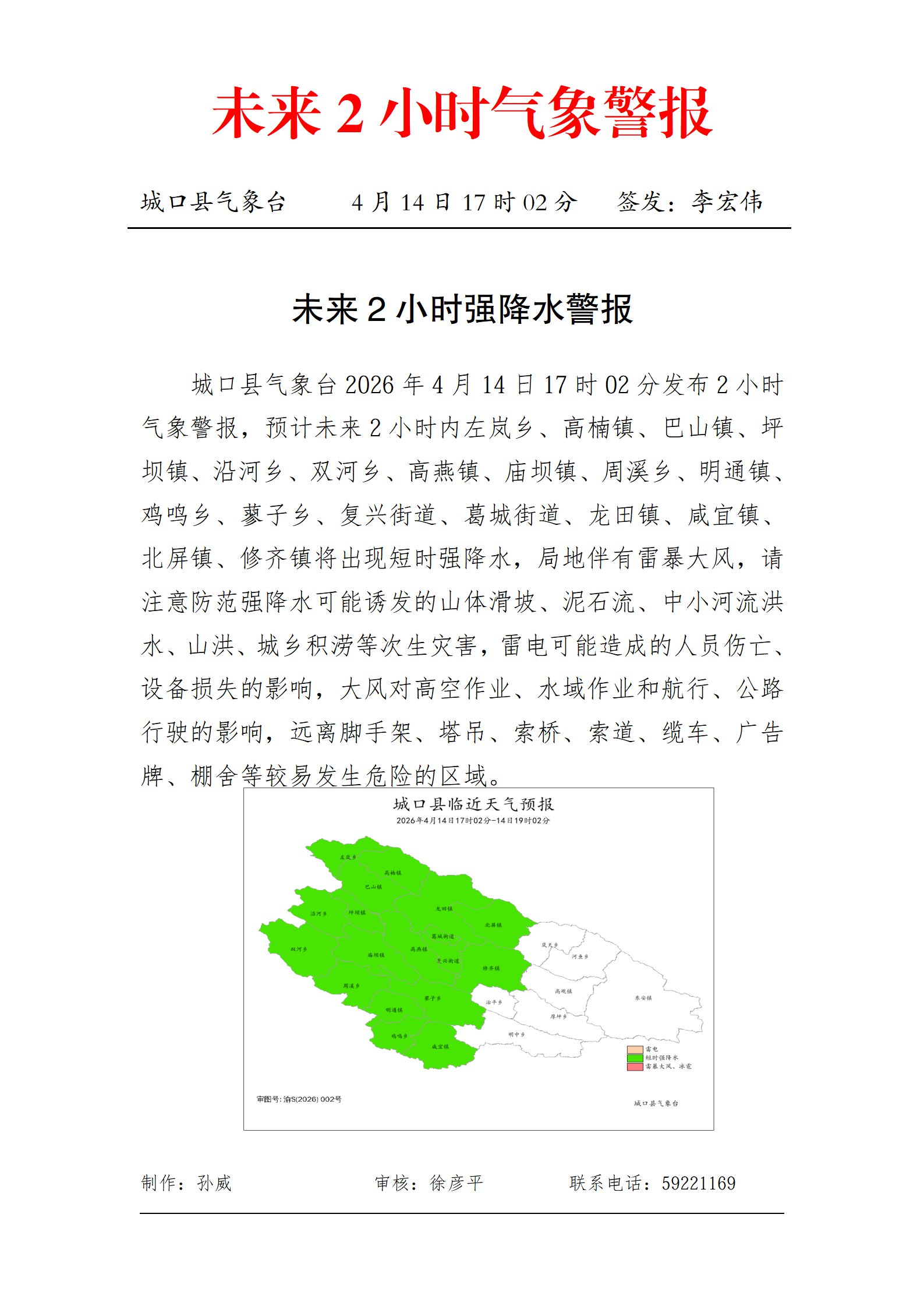 未来2小时强降水警报