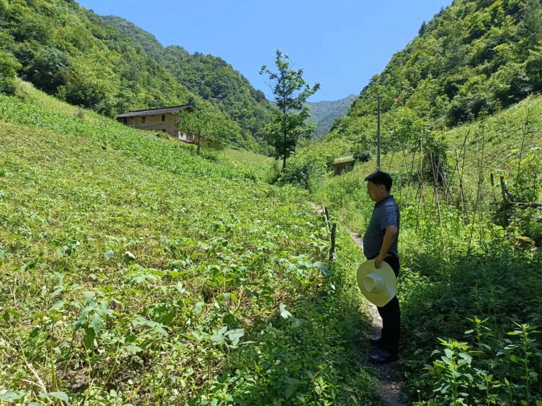 7月3日,龙田乡党委书记高超到团堡村巡查地灾点有无人员回流情况。