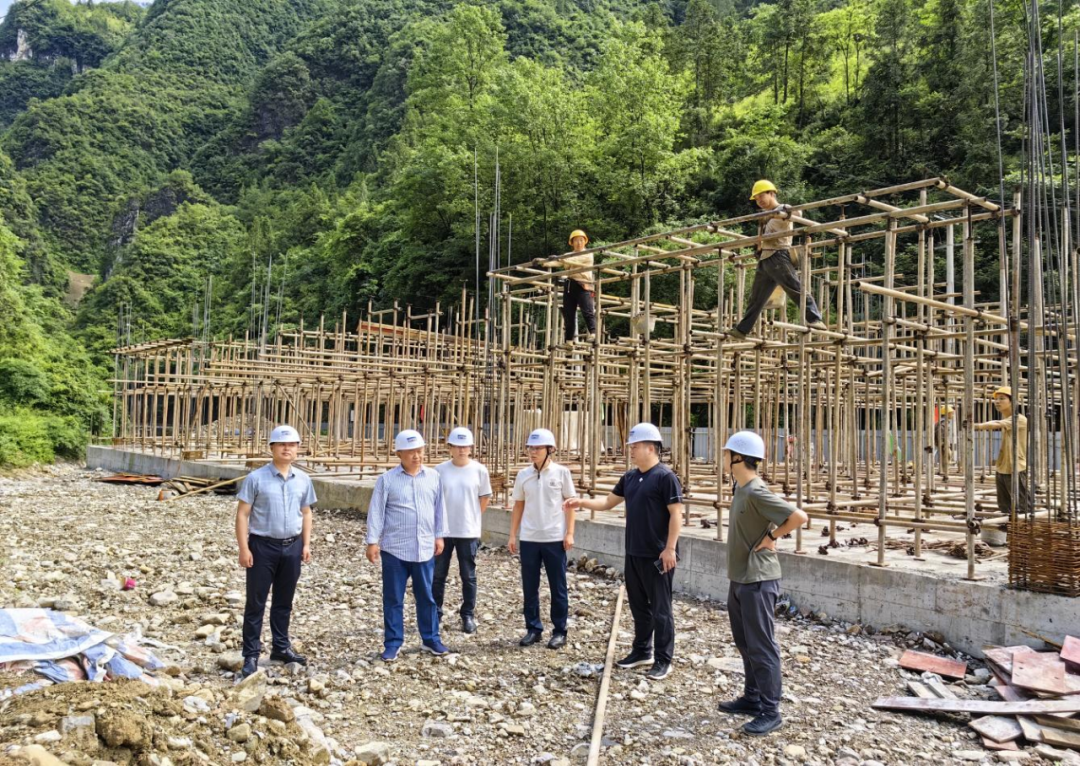 7月6日,北屏乡党委书记高仁茂带队查看渝西高铁北屏段斜井建设进度情况,同中铁十二局施工方协商规划涉河垮河建设路径。