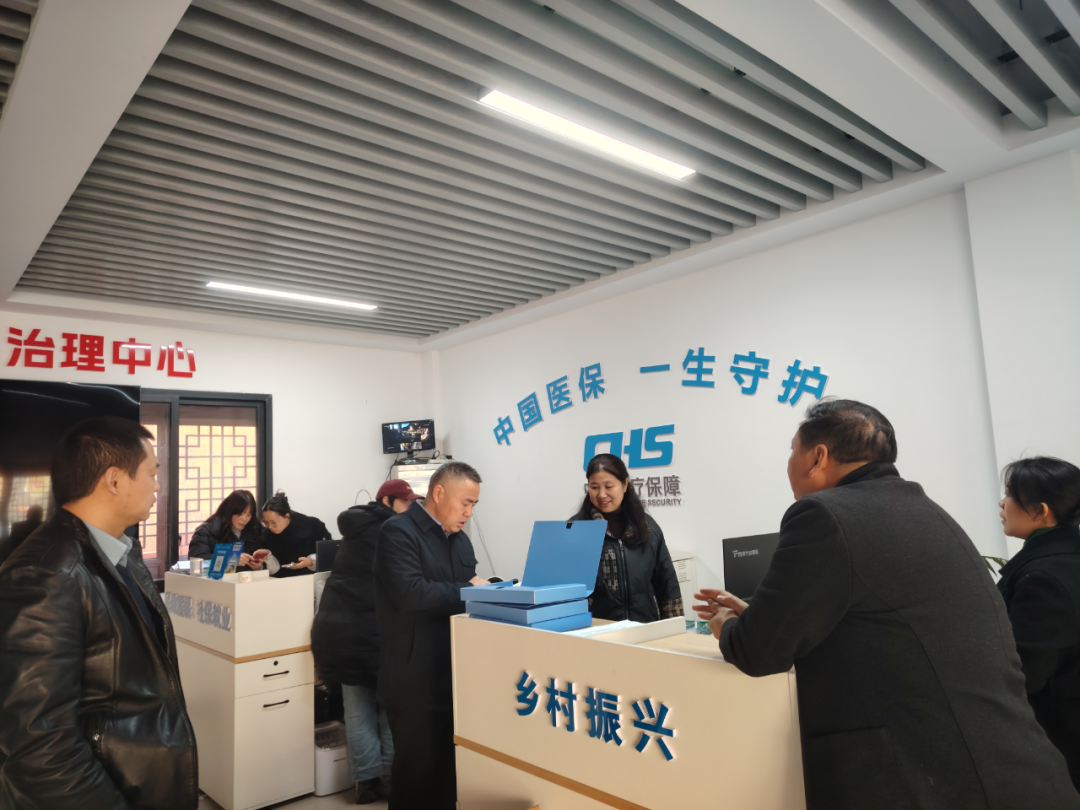 11月19日,修齐镇镇长詹同浩(左),带队到各村(社区)调研村卫生室运行情况,提出要规范化运行,为村民提供便捷可及的基本医疗卫生服务,筑牢健康防线。