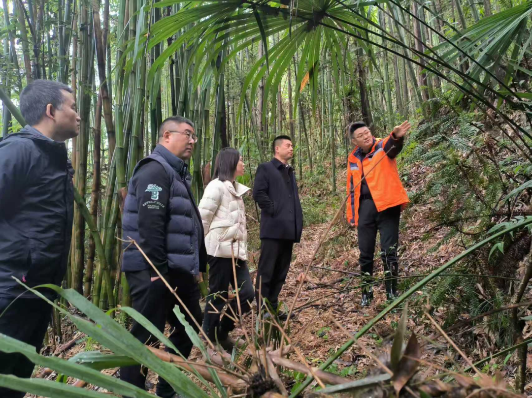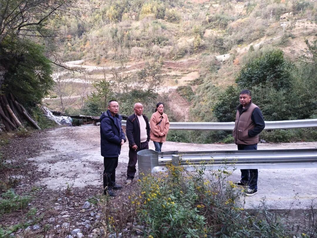 11月17日,鸡鸣乡党委书记姜涛(右二)带队到金岩村赵家大坪查看山体裂缝情况,并针对安全隐患排查整治做了相关强调。