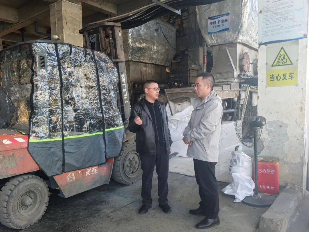 11月18日,巴山镇党委书记杨永国(右)走访辖区民营企业,现场办公协调解决发展难题,着力推动民营企业高质量发展。