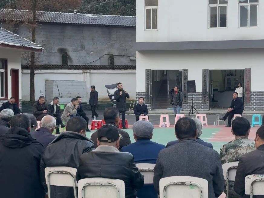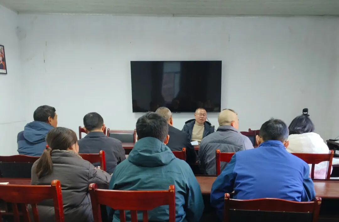 11月19日,高燕镇党委书记周远志(前排左四)到五峰村宣讲党的二十届四中全会精神。