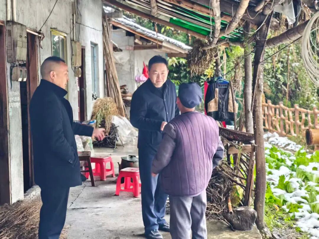 11月17日,双河乡党委书记梁峰(中)带队到村走访监测户,实地察看生产生活、产业发展及收入情况,并就织密织牢民生保障等进行了重点关注。