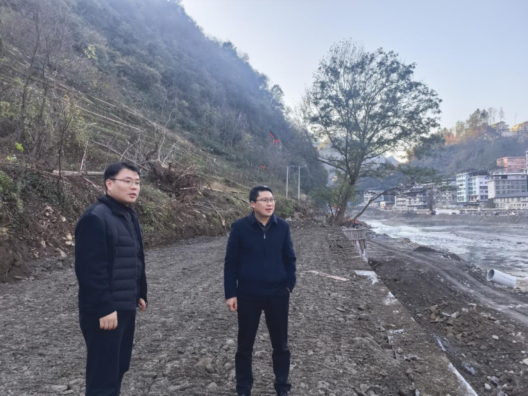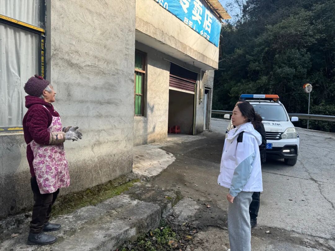 12月8日,沿河乡党委书记谭天平(左一)到北坡村入户走访,实地查看房屋结构安全、墙体稳固及周边环境条件,切实筑牢安全防线,守护安居底线。