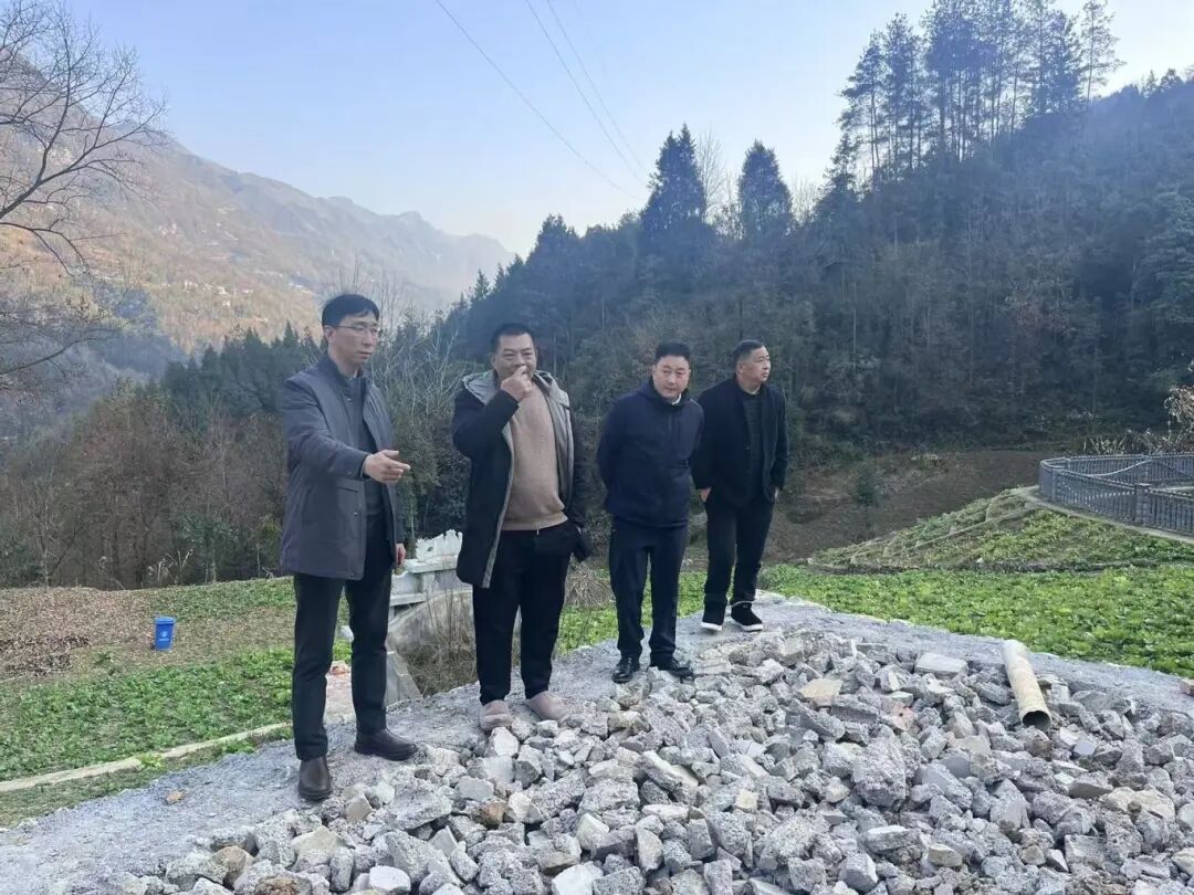 12月8日,河鱼乡党委书记代忠相(右一)带队实地指导相关民宿“药旅融合”项目建设工作,统筹策划开业运营方案,聚力推出河鱼民宿药膳、药养、药浴特色IP。