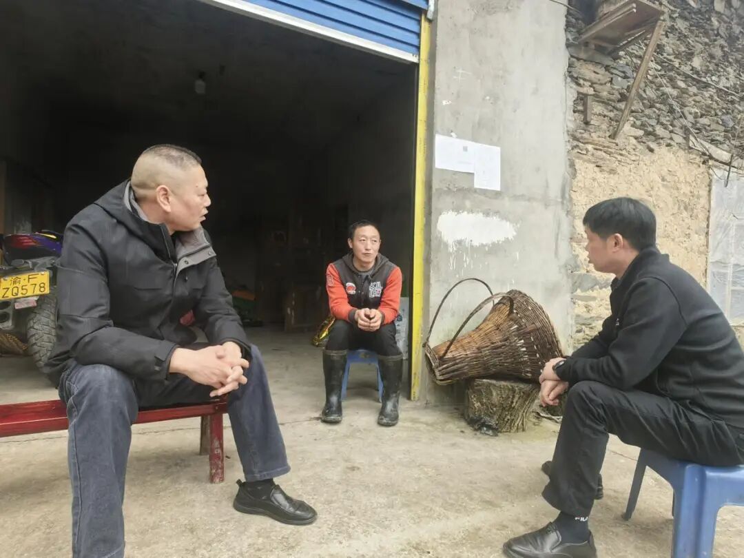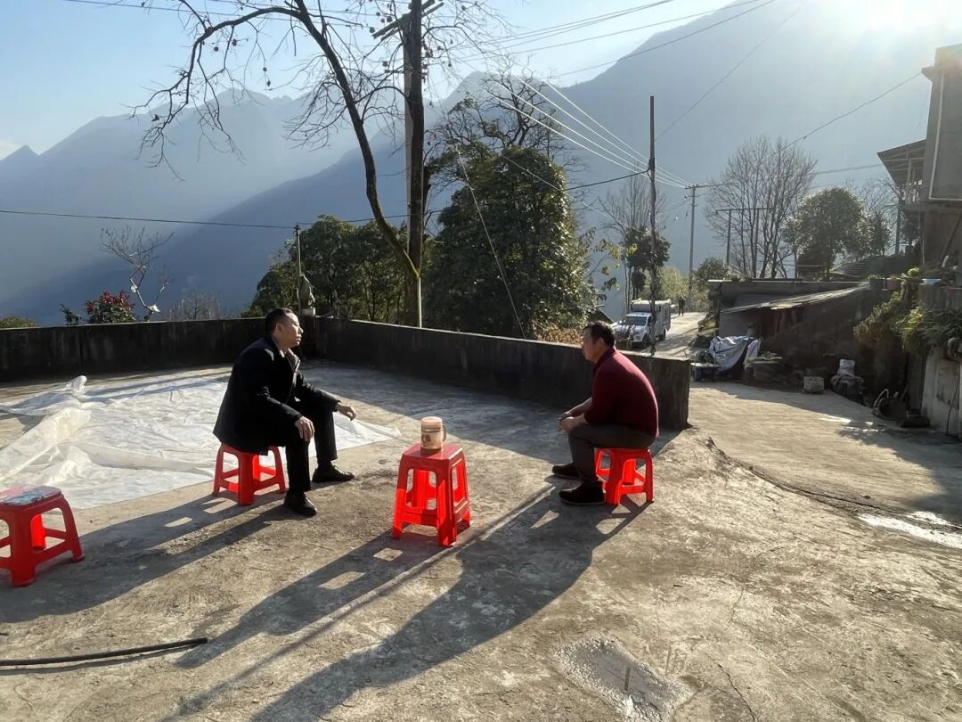 12月11日,坪坝镇党委书记代信清(左)带队走访辖区群众,入户交流听诉求、解难题,宣传政策、收集民意,切实回应和解决群众急难愁盼。