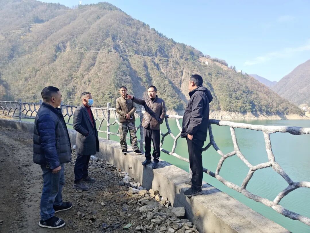 12月11日,巴山镇党委书记杨永国(右二)实地查看巴山湖湿地公园修复工程,现场检查建设进度,提出要在确保安全的前提下,实现工程质量和效益双提升。