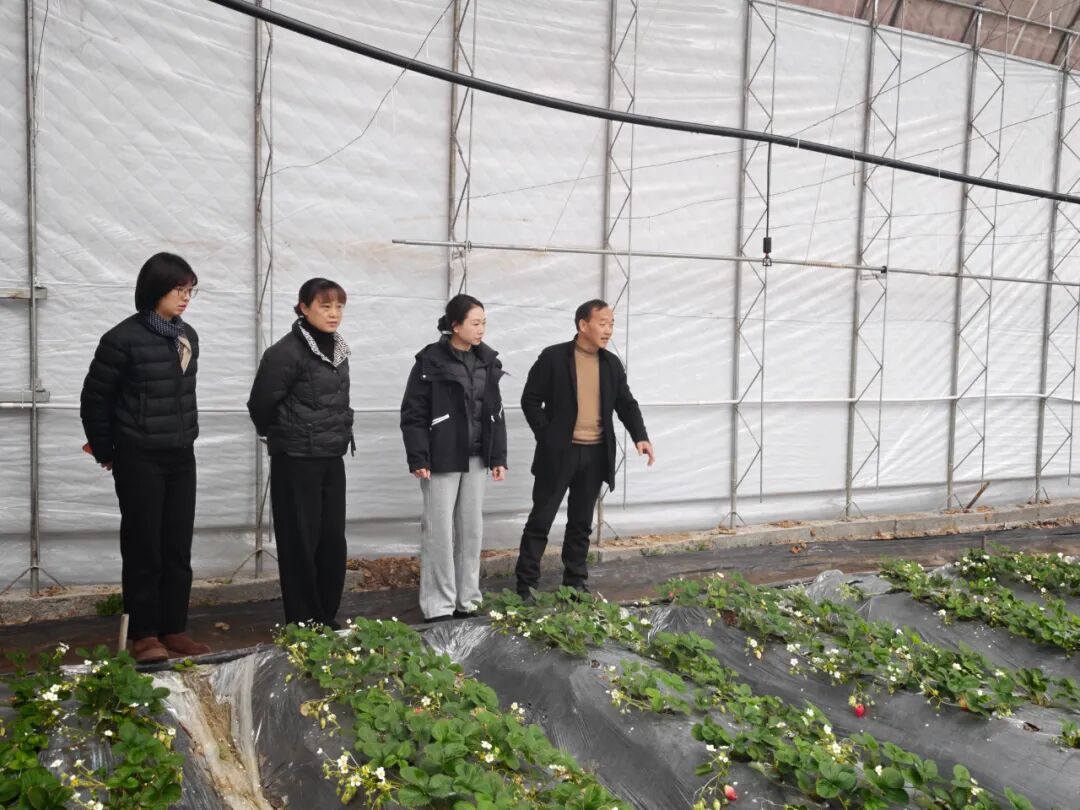 12月19日,高观镇党委书记庞雪飞(右二)实地查看辖区产业发展情况,提出要立足本地资源禀赋,持续培优做强特色产业,完善联农带农机制,为乡村全面振兴注入动力。