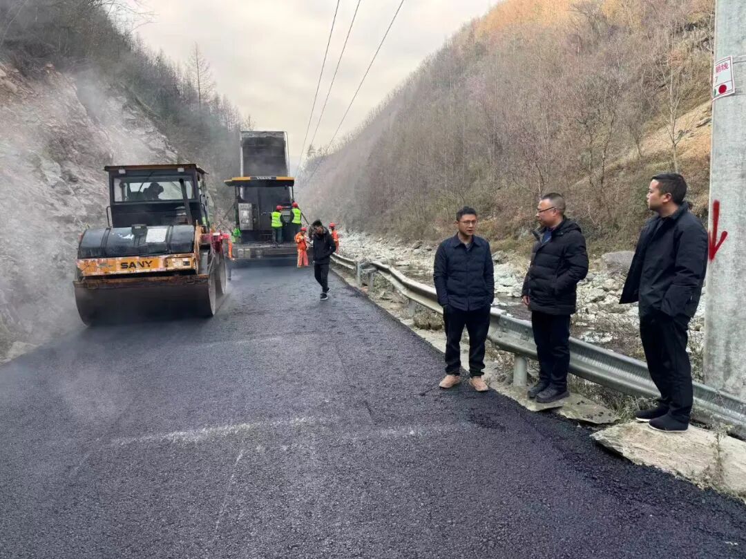 12月19日,东安镇党委书记贺书逊(右二)实地查看东朝路道路油化工程施工进展情况。提出要严把材料关、技术关与安全关,做好施工期间的交通疏导,最大限度减少对群众出行的影响,真正把好事办好、实事办实。