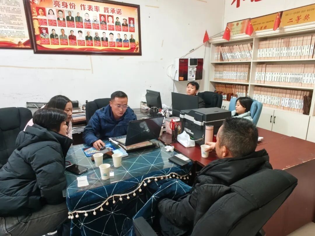 12月16日,蓼子乡党委书记符美森(左三)带队到各村社区开展医保参保工作的指导与督促。