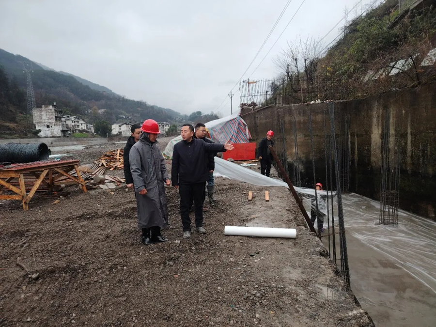 2025年12月31日,蓼子乡党委书记符美森(左)带队到各项目建设现场查看建设情况,督促建设方做好生态保护和安全生产工作。