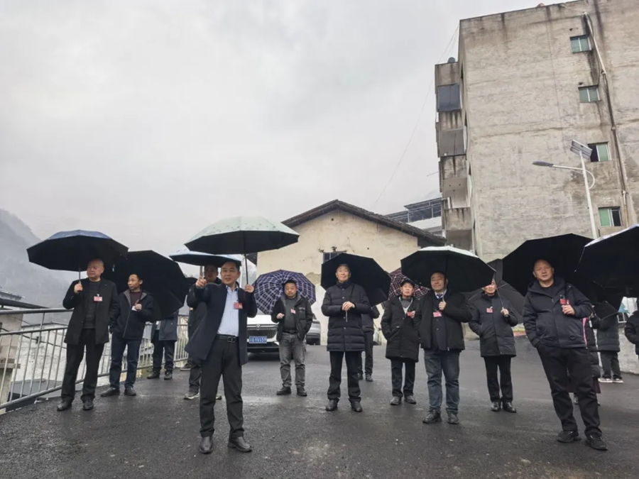 2025年12月31日,巴山镇党委书记杨永国(前左)带领参加巴山镇第十九届人民代表大会第十次会议的代表,集中视察“巴山镇元坝村2025年度市级美丽移民村建设项目”。