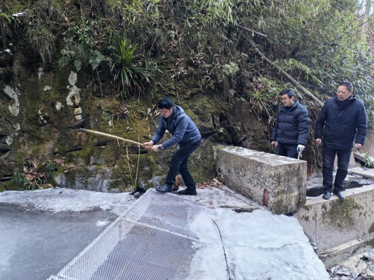 1月9日,高楠镇党委书记郭孝军(左)带队深入辖区水源地开展专项检查,现场研判并快速处置结冰隐患,全力保障水渠输水畅通,以精准排查、高效行动筑牢民生用水安全防线。