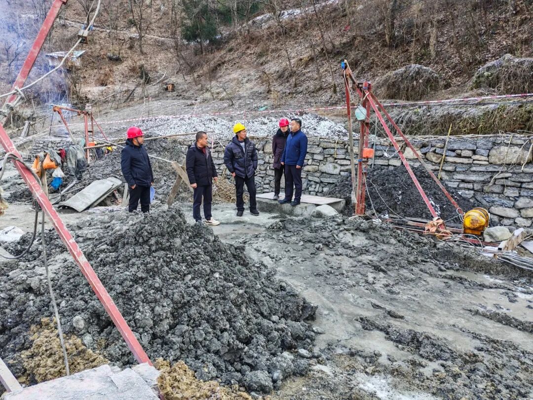 1月6日,治平乡党委书记李长建(左一)深入阳河村,实地查看以工代赈项目建设进展,详细了解施工进度与民生保障情况。