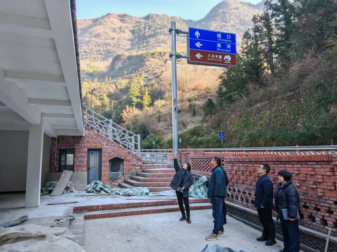 1月8日,双河乡党委书记梁峰(左一)带队查看交通驿站建设情况,对解决群众候车难问题作了详细安排,并对功能布局的服务便利性与实用性进行了探讨,切实办好民生实事。