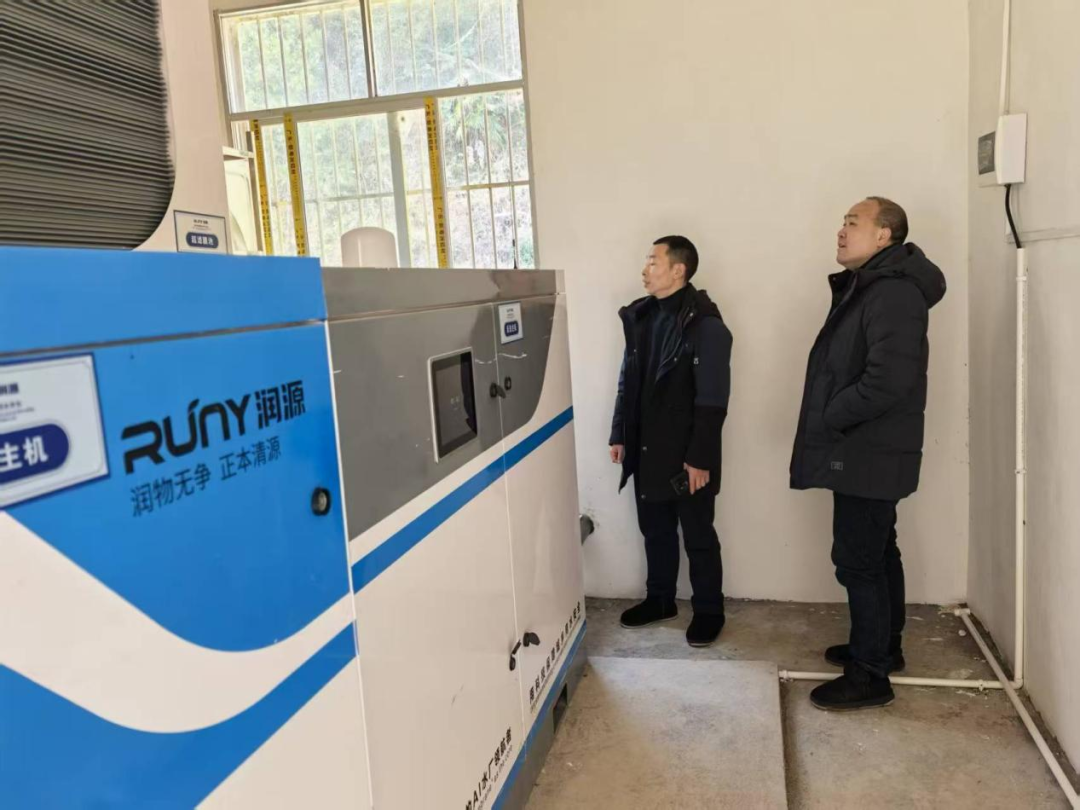 1月7日,左岚乡党委书记陆是朝(右)到左岸村检查场镇饮水安全工作,现场查看供水运行与水质状况,提出要压紧压实网格员及护水管水人员责任、加强日常监测,确保供水稳定可靠。