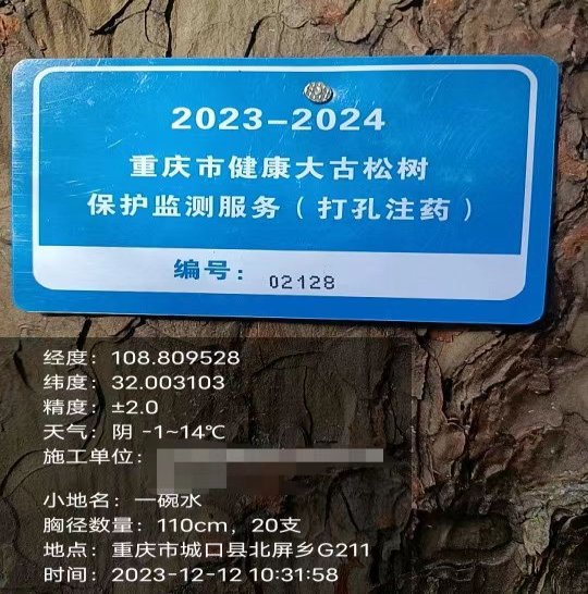为切实加强古树名木的保护,有效防控松材线虫病。连日来,县林业局组织专业防治队伍,抓住防治重要时间节点,对县域内重点区域大古松树开展打孔注药防治工作,为松树打下冬季“预防针”。