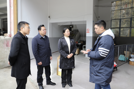 2月25日,县委副书记、县长王春梅带队到复兴街道阳坪村缘曦速递公司调研。记者 夏一文 摄