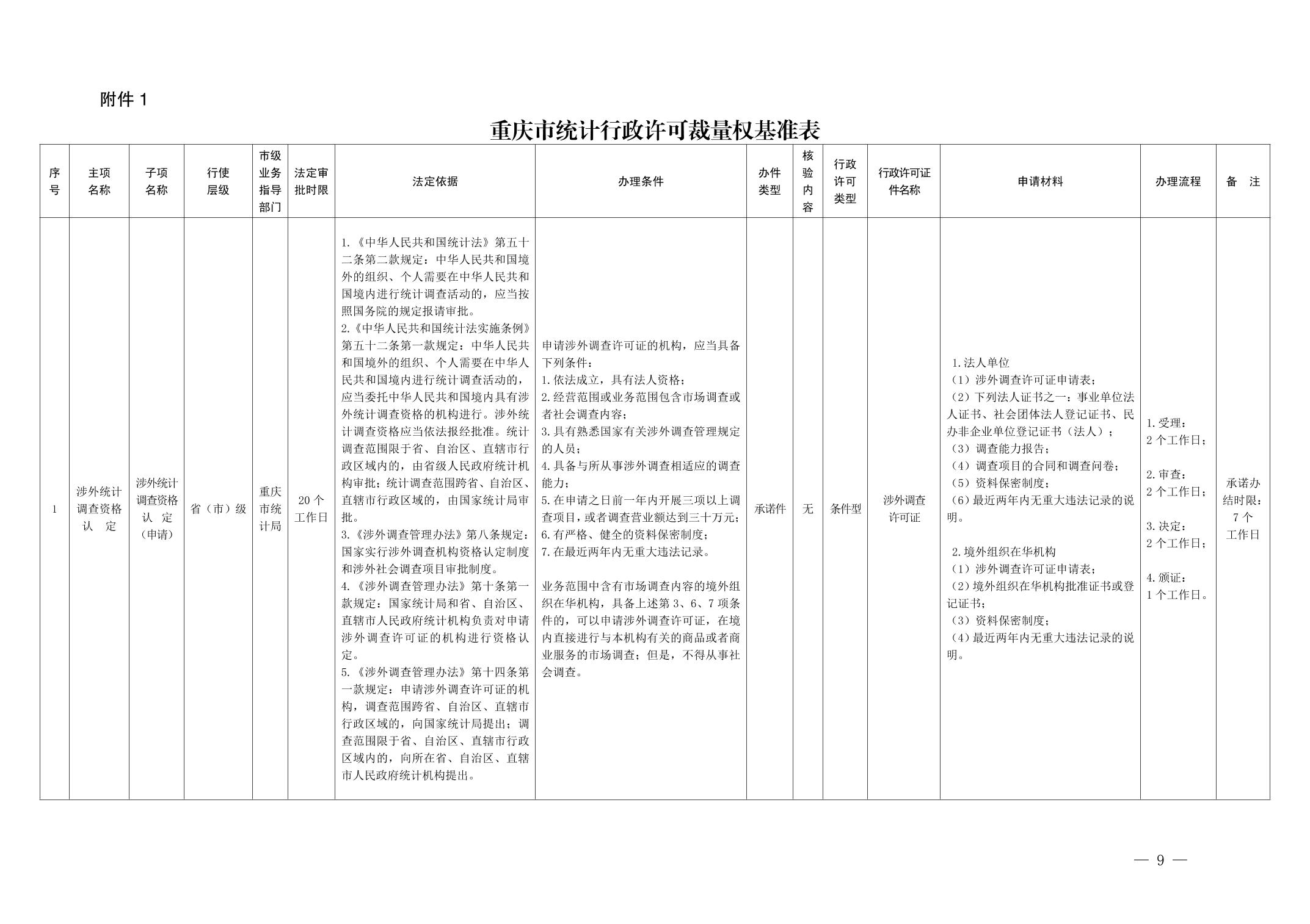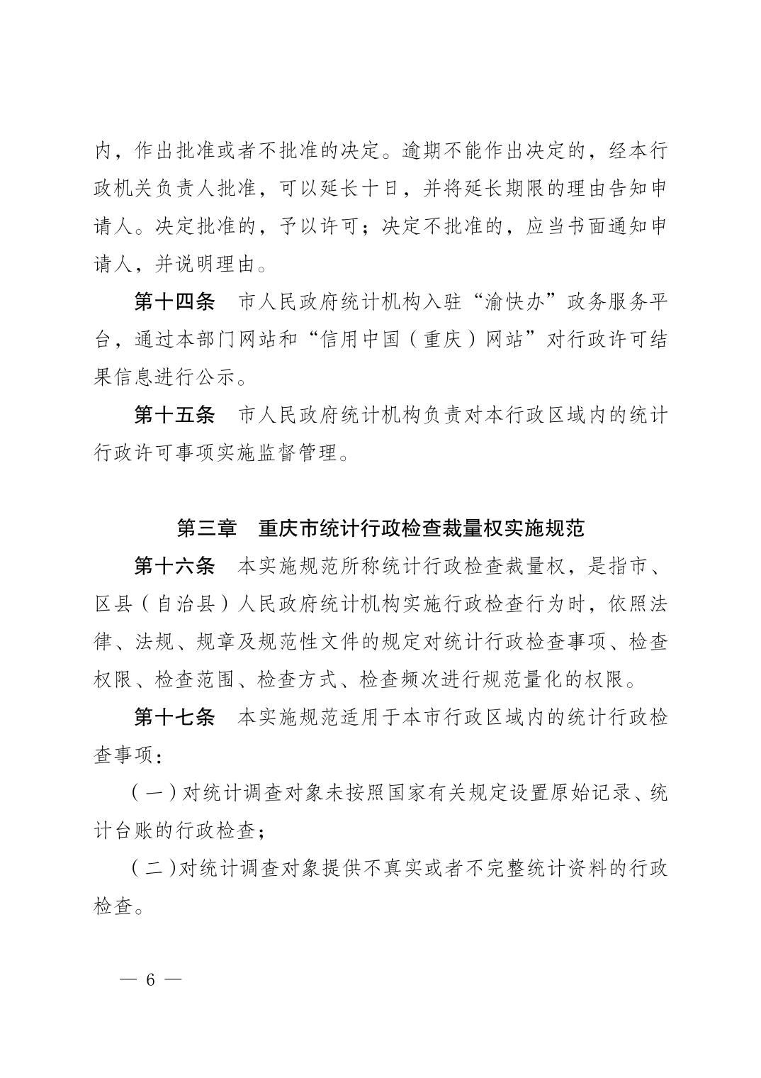 关于印发《重庆市统计行政许可、行政检查裁量权实施规范》的通知