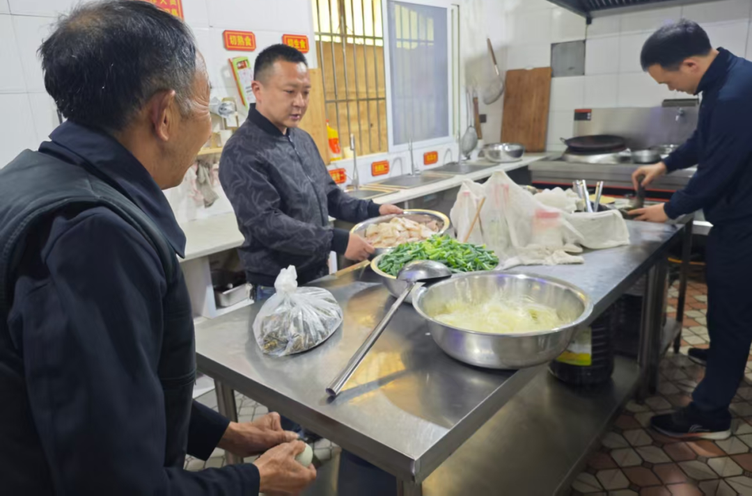 在食堂,工作人员小余没有停留在查看台账上,她轻轻揭开正在炖煮的汤锅,笑着对厨师说:“不仅要重视食品安全,老人家牙口不好,饭菜也要炖的软烂些。”一番话,说到了老人们的心坎里。从食材的“出生证明”到餐盘的最后消毒,检查的每一个环节,都围绕着“让老人吃得暖心、吃得安心”这个朴素的心愿。