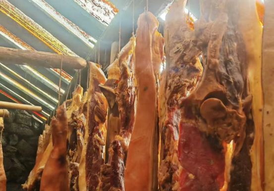 “累是真累,从早忙到晚腰都直不起来,但看着炕上挂满的腊肉、灌好的香肠,还有捏成形的血粑粑,心里就踏实又满足。”郭大叔的家人笑着说。炕好的腊肉久放不坏,是接下来一整年里餐桌上的美味,提到城口,这口“老腊肉”更是刻在记忆里的家乡味道。