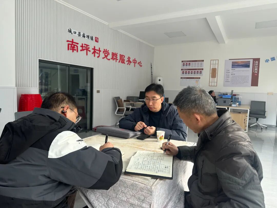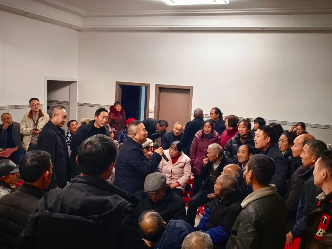 12月16日,北屏镇党委书记孙廷怀(中)参加苍坪村社员会,围绕冬季防一氧化碳中毒、医保政策和规划管控等群众关切进行宣讲,并倾听群众的急难愁盼问题。