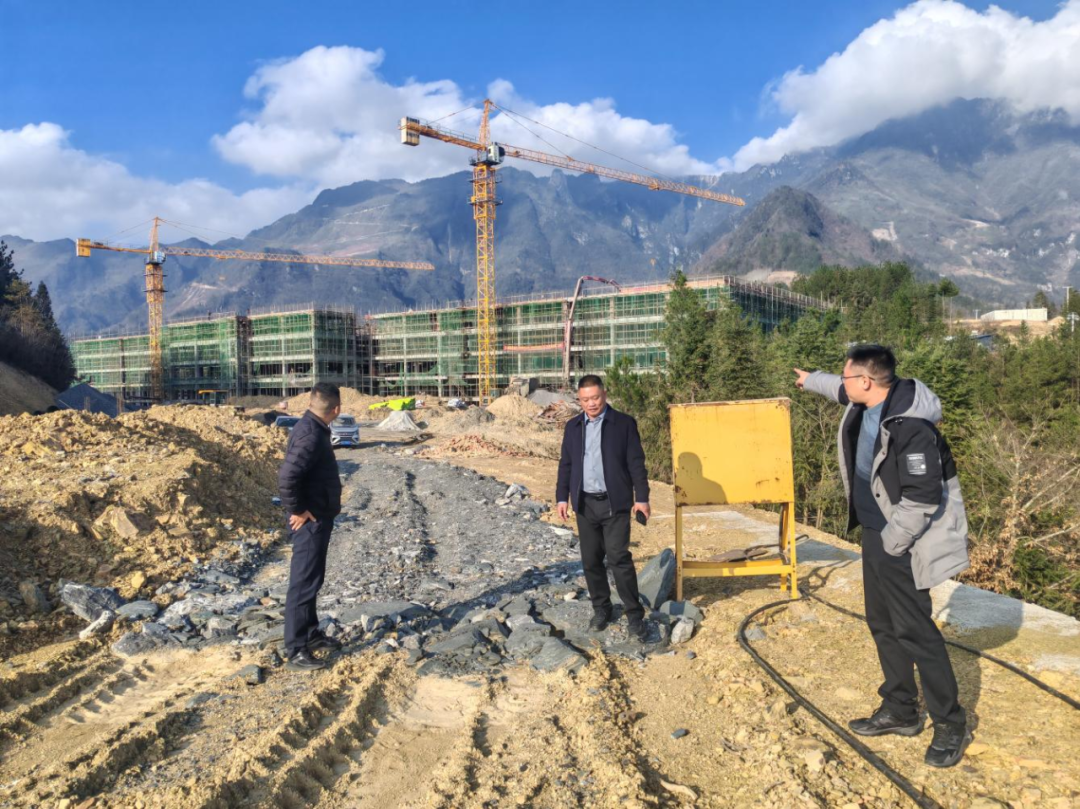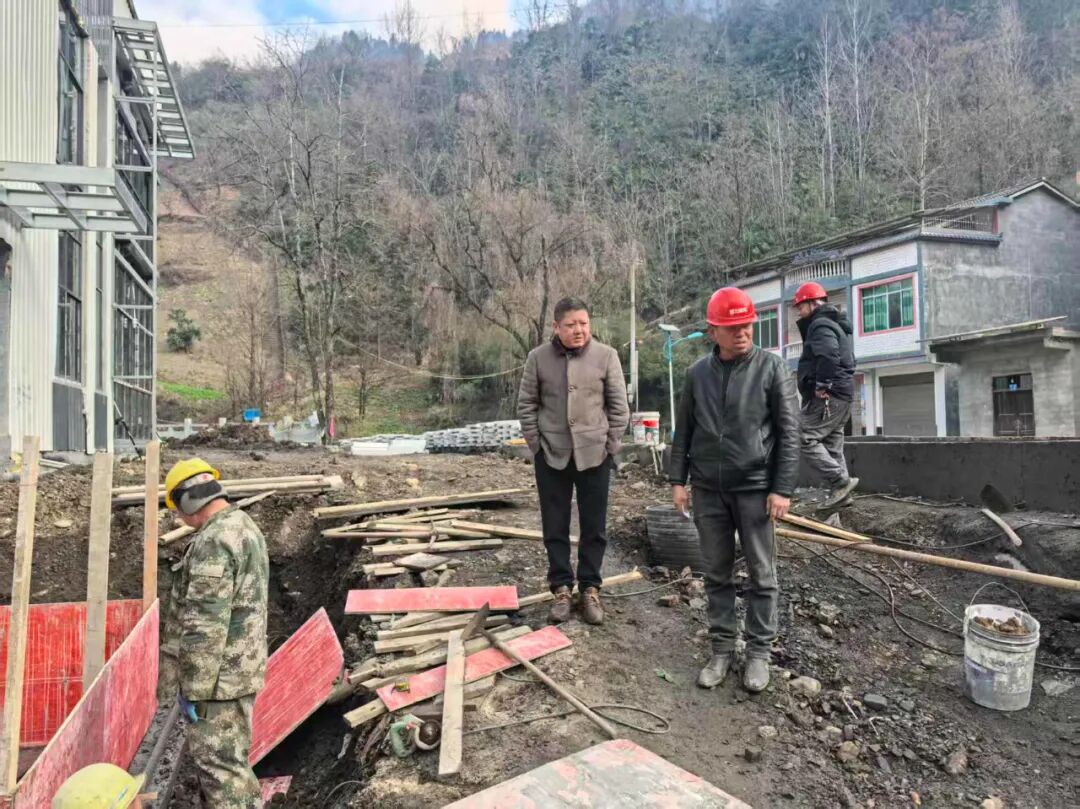 12月18日,治平乡党委书记李长建(中)深入天麻厂建设基地,实地察看施工进度与设施配套情况,详细询问建设难点,叮嘱施工方严把质量关、筑牢安全防线。