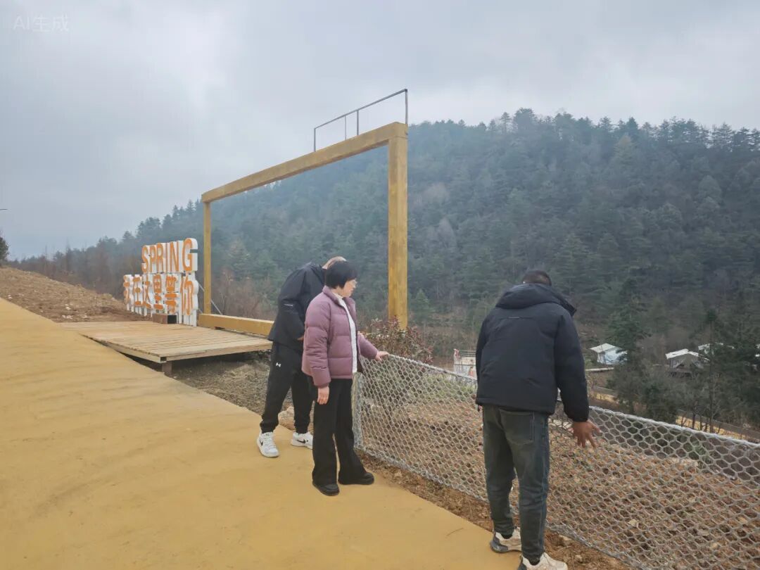 12月19日,双河乡党委书记梁峰(中)带队到天星村八台天寨·嬉雪原,实地查看场地建设进展,重点检查场地设施、运营准备及安全管理措施落实情况。
