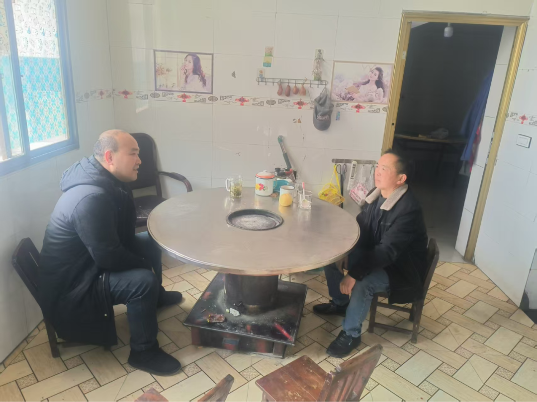 12月15日,庙坝镇党委书记张炜(中)到各村对产业发展、基础设施建设等近期重点工作进行指导,并走访监测户。