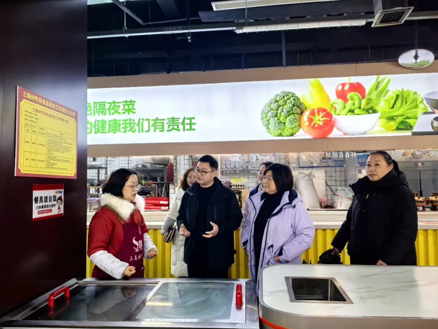 2025年12月31日,葛城街道党工委书记王成伟(左二)开展节前安全检查,先后到老年食堂、大型商超等重点场所,详细了解消防安全、应急疏散及食品安全等情况,提出要压实企业主体责任,加大执法检查力度,守好安全底线,营造和谐稳定节日氛围。