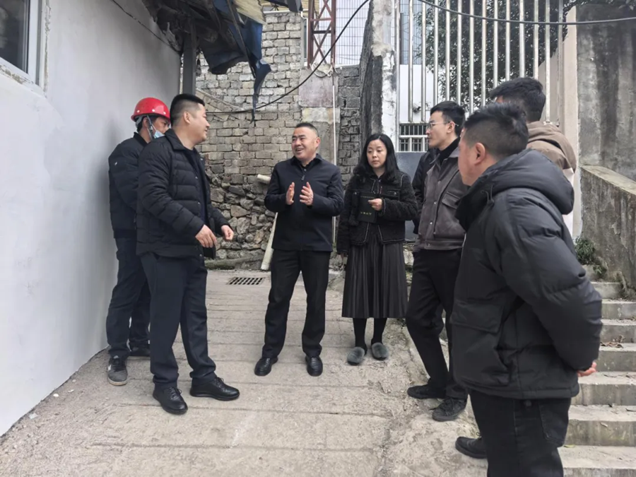 2025年12月30日,复兴街道党工委书记范安武(左三)到太和社区调研老旧小区改造项目建设情况,现场听取项目负责人关于施工进度、安全管理等情况汇报。提出要严把工程质量关、安全关,确保项目如期优质完成。