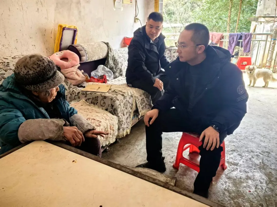 12月31日,明通镇党委书记林璨(右一)走访白台村脱贫户,了解其身体状况、生产生活、医疗保障、相关帮扶政策落实等情况,向群众讲解各类惠民政策,并听取其当前存在的困难和诉求。